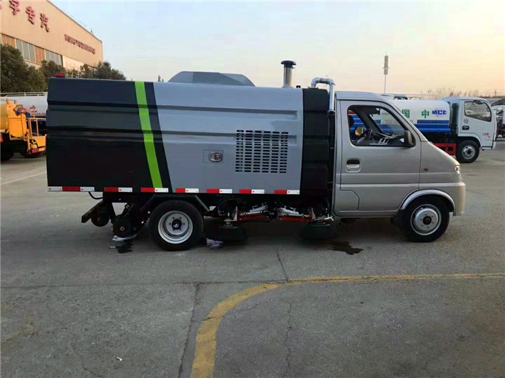 采用長安二類底盤改裝,加裝副發動機、風機、清水箱、垃圾箱、左右立掃、后置吸盤,掃盤降塵系統,液壓系統、專用裝置電控系統和副車架等改裝而成。
