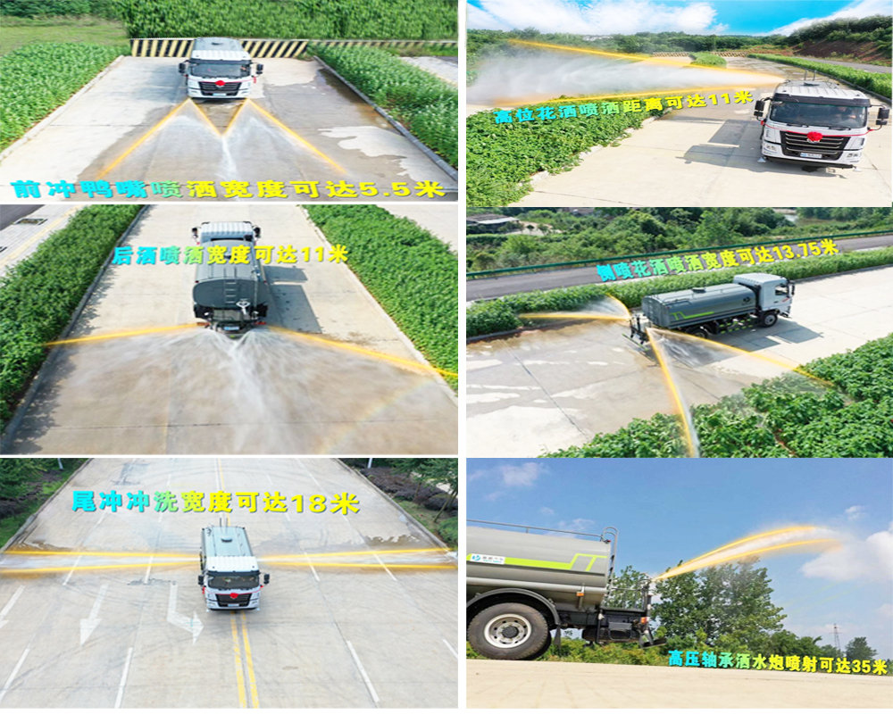 專用功能配置:罐體實(shí)際容積約為17立方米,(罐體有效參數(shù)14立方米、額定載質(zhì)量10620kg、)采用武鋼優(yōu)質(zhì)碳鋼板卷壓成型。配備專用灑水泵,自吸自排,前噴后灑、側(cè)噴、后工作平臺(tái)及灑水高壓炮。灑水泵自吸高度為6米左右,整車灑水寬度14米左右,后工作平臺(tái)水炮可調(diào)成:直沖狀、大雨、中雨、小雨、毛毛雨,有效射程≥28米,整車帶接頭、水位計(jì),自流閥。后工作平臺(tái)主管路帶1寸澆花接口,附送2根3米水管,1個(gè)爬梯,兩側(cè)及后保險(xiǎn)杠。 |