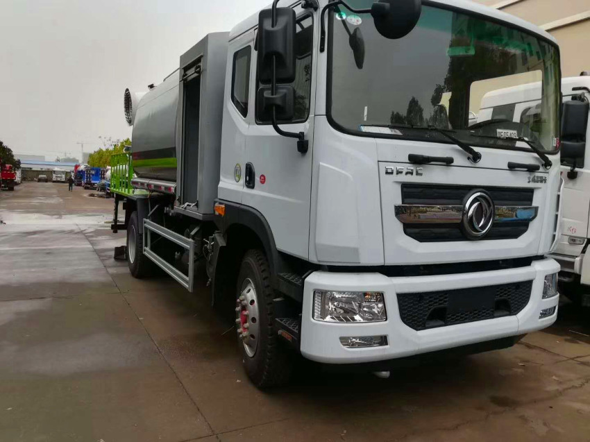 上裝配置:罐體容積為 15-18 立方多功能抑塵灑水車,選配風送式霧炮機組射程50米、60米、80米、100米、120米,罐體鋼板為4mm碳鋼Q235材質,罐內隔板具有防波作用,以減輕汽車行駛時罐體液體沖擊,罐體及整車外形尺寸按照公告。帶大功率專用灑水泵,泵可自吸自排,整車前沖、后灑、側噴、帶65消防接口,后平臺配CLW-50、CLW-60、CLW-80、CLW-100、CLW-120型風送式霧炮機組;罐體前封頭配大功率柴油發(fā)電機組;遠程遙控系統(tǒng)控制;霧炮機自動旋轉角度0-360°。后平臺帶綠化灑水炮,灑水炮可全方位旋轉,可連續(xù)調成直沖狀、大雨、小雨、毛毛雨;前封頭帶水位計,后平臺主管路帶1寸澆花接口,后爬梯。帶兩根輸水管及陰陽端。罐體顏色:銀/灰/綠,罐體兩側噴“多功能抑塵車”字樣,貼反光標示。