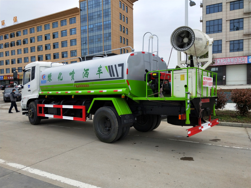 罐體容積:罐體容積10-12立方,罐體鋼板采用Q235碳鋼鋼材,前沖后灑、側噴、平臺高炮、自流閥及消防接頭各1個、水管2根、標配大功率自吸泵 ,可選裝50-80米噴霧機,根據噴霧機射程選擇配套的發電機組,詳細參數:《噴霧機/霧炮機》