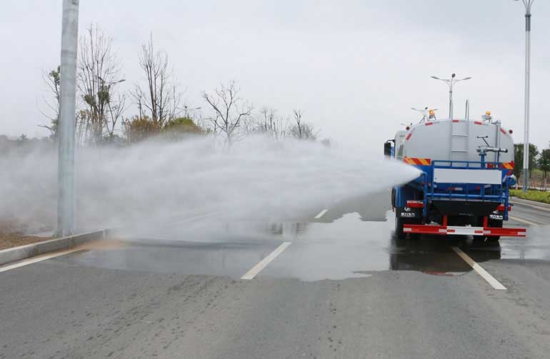罐體材質為厚4mm武鋼優質板材,灑水泵,灑水高炮,工作平臺,取力器,前沖,后灑,萬向嘴,自流閥,濾網,分配閥,噴頭,帶自吸自排功能。