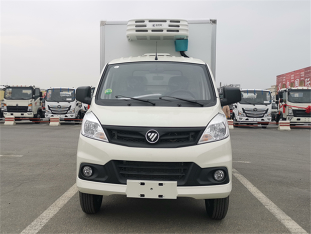 福田2米8冷藏車車身配置為:單排駕駛室,選東安116馬力,1.5L排量發動機,5檔變速箱,175R14真空胎,3噸后橋?蛇x帶原裝空調,中控門鎖,電動玻璃。