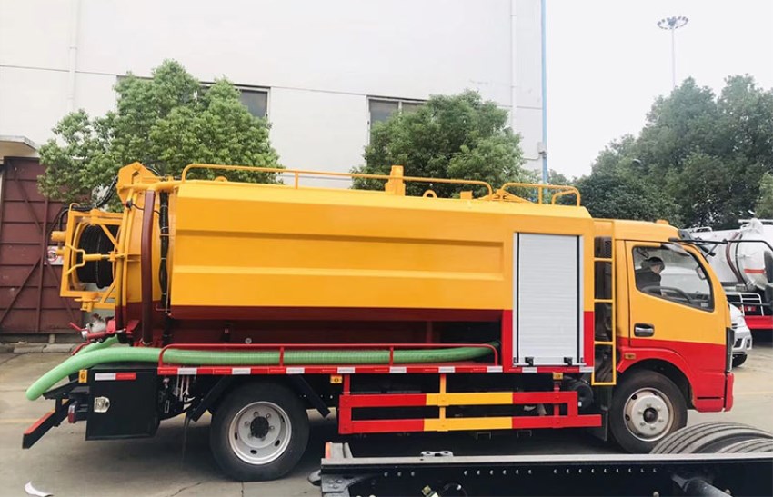 東風(fēng)大多利卡D7新款駕駛室,底盤型號:EQ1110SJ8BDC 廣西玉柴150馬力渦輪增壓,5.5噸后橋,8.25R16鋼絲胎,雙層大梁,斷氣剎,帶空調(diào) ,ABS,6檔變速箱。吸污罐:7立方,罐體6毫米碳鋼,吸污部分:配SK-9水循環(huán)泵,(選裝SK-12水循環(huán)泵)進氣管加過濾網(wǎng),防溢閥加高,兩根8米吸污管,后蓋4個卡扣鎖緊,后視糞窗,后部150mm的球閥和100mm的球閥均帶出口,吸污罐體和清洗罐體外互通。右后邊150mm排污口帶球閥。清洗水罐3立方,4毫米碳鋼,右側(cè)消防進水,氣控推水,帶過濾網(wǎng),采用天津通潔高壓清洗泵,24兆帕,170升流量,選裝215L流量,22兆帕高壓泵,標(biāo)配60米內(nèi)徑19#高壓管,組合噴頭一套,罐體兩邊為平臺,后背700mm高壓清洗卷盤,后部左右后一個示寬燈,整車工程黃, 其它標(biāo)準(zhǔn)配置。
