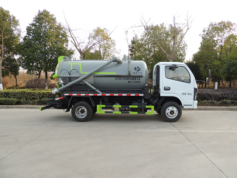 主要裝置有罐體及吸污裝置;罐體有效容積:4.04立方米,罐體外形尺寸(總長×直徑)(mm):