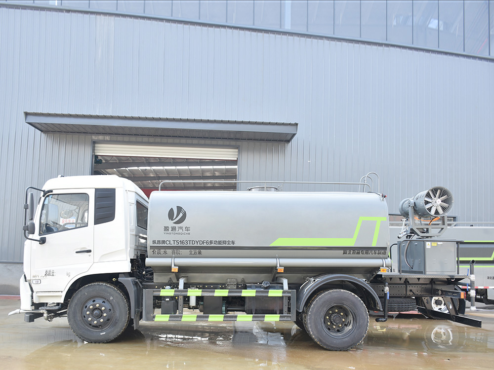 東風天錦12方抑塵車產品配置 1.底盤配置: 發動機康明斯 230 馬力(六缸),法士特 8 檔變速箱,D530 排 半標準頂,4.5T 前橋,9T 后橋 10.00 鋼絲胎,軸距 4700,斷氣剎, 空調,電動玻璃。2.上裝配置: 1、罐體約為 12 方,可加裝 30-40 型霧炮 2、邊燈帶電,罐體尾部上方標配 2 個紅色示寬燈, 3、標配前噴為鴨嘴直沖,標配后沖,用戶可根據自己的需求,來調 整對沖位置。 4、花紋防滑平臺,炮筒后蓋為定制型螺栓卡扣, 5、前噴、后沖、后灑、側噴,綠化高炮開關球閥均采用 50 大通經 不銹鋼球閥, 6、新式軸承式水炮,更加耐用, 7、60-90 型水泵, 8、防腐法蘭墊片, 9、鋁制后灑,不易炸開 10、罐體自動焊(美國林肯焊機及電源),拼板自動焊接,封頭環 縫焊接,無氣孔,焊縫美觀。 11、側護網、后保險杠、均為螺栓連接,方便拆卸,維修方便。 12、塑料擋泥板,替代鐵擋泥板,更加輕便,用螺栓連接,方便拆 卸。 13、前部、后部主管連接處為 6 孔圓法蘭,不易沖墊