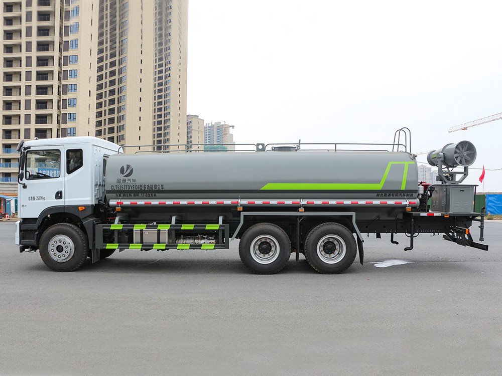 東風(fēng)華神T5 -20方抑塵車-大型霧炮車產(chǎn)品主要技術(shù)參數(shù) 序號 名稱 型號、規(guī)格 1 整車型號 CLT5253TDYEQ6 型多功能抑塵車 2 發(fā)動機(jī)型號 B6.2NS6B260 3 發(fā)動機(jī)馬力/功率 康明斯 260 馬力/191KW 4 發(fā)動機(jī)排量 6200ML 5 變速箱 法士特 8 檔(帶高低檔) 6 輪胎規(guī)格 11.00 鋼絲胎 7 軸距 4350+1350 8 總質(zhì)量 25000KG 9 整備質(zhì)量 11400KG 10 額定載質(zhì)量 13405KG 11 整車尺寸(長×寬×高) 10.45*2.51*3.2 12 罐體容積 20 方 13 燃料種類 柴油 14 排放標(biāo)準(zhǔn) 國六 15 水泵型號 60/90 16 罐體材質(zhì) Q235 碳鋼