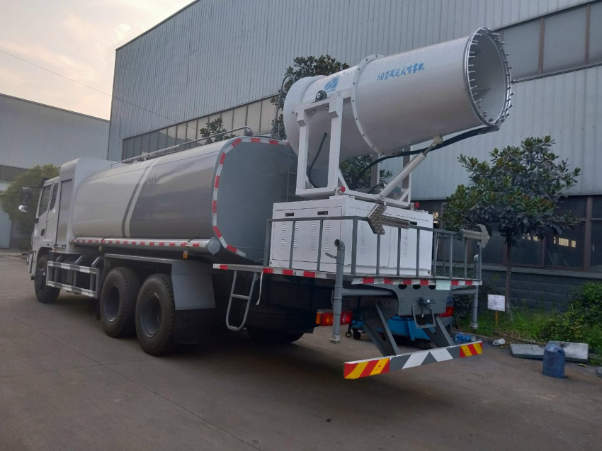 抑塵車吸程≧7米,灑水寬度≧14-16米,射程≧25-40米,引水時(shí)間<5min,流量60m3/h。前沖(噴)、后灑、帶側(cè)噴(花灑)、帶后工作平臺(tái)、平臺(tái)上安裝綠化灑水高炮(炮噴射形狀可調(diào)節(jié):直沖、大雨、中雨、毛毛雨、霧狀、可連續(xù)調(diào)節(jié),360°旋轉(zhuǎn)),配消防接口,自流閥,濾網(wǎng),帶自吸自排功能。配備大功率專用灑水泵,泵可自吸自排,安裝過濾網(wǎng),帶消防接口,可通過消防栓進(jìn)水,帶自流閥,此車尾部加裝大功率農(nóng)藥噴灑炮,噴灑狀態(tài)霧狀,有效射程15-45米,外部平臺(tái)帶獨(dú)立的機(jī)組。
