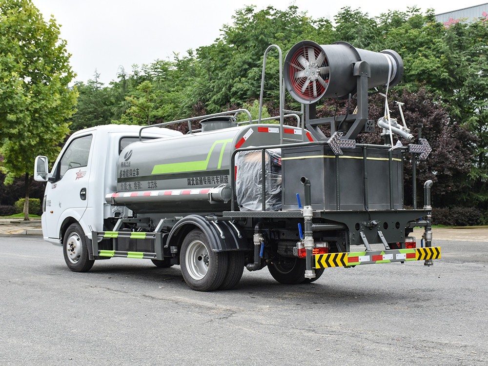 東風(fēng)途逸 2.5 方抑塵車主要技術(shù)參數(shù) 序號 名稱 型號、規(guī)格 1 整車型號 CLT5040TDYEQ6 型多功能抑塵車 2 發(fā)動機型號 Q23-95E60 3 發(fā)動機馬力/功率 全柴 95 馬力/70KW 4 發(fā)動機排量 2300ML 5 變速箱 萬里揚 5 檔 6 輪胎規(guī)格 185 真空胎 7 軸距 2800 8 總質(zhì)量 4495KG 9 整備質(zhì)量 2880KG 10 額定載質(zhì)量 1485KG 11 整車尺寸(長×寬×高) 5.8*1.85*2.6 12 罐體容積 2.5 方 13 燃料種類 柴油 14 排放標(biāo)準(zhǔn) 國六 15 水泵型號 40/50 16 罐體材質(zhì) Q235 碳鋼四. 產(chǎn)品功能展示 霧炮 后灑 后對沖 高炮 側(cè)噴