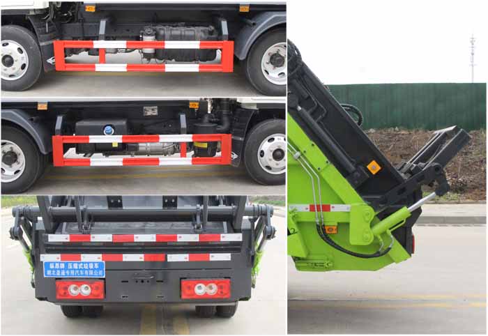 福田小卡3方壓縮垃圾車該車專用裝置為垃圾箱體及液壓系統裝置,主要用于垃圾的收集,轉運作業.側防護材料為:Q235碳鋼,連接方式為:螺栓連接,后部防護為專用裝置代替,后部防護離地高度(mm):410.選裝無上料裝置時無后伸,選裝密封斗裝置,翻桶裝置,擺臂裝時,后伸280mm;選裝翻斗裝置時,后伸380mm.ABS系統控制方式為4S/4M,氣剎:ABS型號為CM4XL-4S/4M,生產廠家為廣州瑞立科密汽車電子股份有限公司.液剎:ABS型號為CM4YL,生產廠家為廣州瑞立科密汽車電子股份有限公司.發動機/油耗申報值為(L/100km):Q23-115E60/11.12,Q23-115C60/11.31.該車選裝直接供電式ETC車載裝置.該車型整備質量包含隨車工具,不含備胎.貨箱質量為1750kg,貨箱材質為T700,側板和頂板厚度為2.5mm;底板厚度為3mm.選裝貨箱側面樣式.后部作業燈具僅在車輛作業時開啟,行駛過程中不可開啟.整車長度/后懸/后伸對應關系(mm)為:5995/1735/280,5995/1635/380,5830/1850/0.隨底盤選裝新前格柵及新logo,選裝新前圍.選裝油箱電瓶安裝位置.