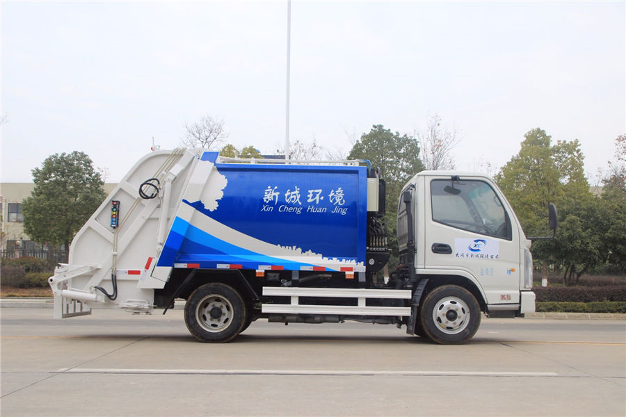 壓縮式垃圾車整車為全密封型,自行壓縮、自行傾倒、壓縮過程中的污水全部進入污水廂,較為徹底的解決了垃圾運輸過程中的二次污染的問題,避免了給人們帶來不便,關鍵部件采用進口部件,具有壓力大、密封性好、操作方便、安全等優點、可選配后掛桶翻轉機構或垃圾斗翻轉機構。