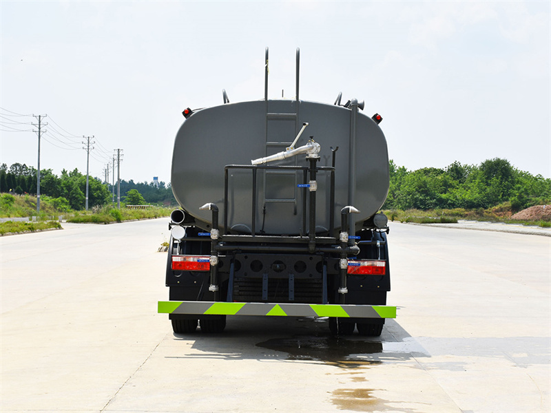 東風12噸灑水車產品標配前噴(鴨嘴)、后沖、后灑、側噴、后置式工作 平臺,平臺上配置綠化水炮(可 360°旋轉,既可以調成柱狀,也可 以調成霧狀,更可以調成直沖狀、大雨、中雨、小雨、毛毛雨),配 備優質大功率專用灑水泵(可自吸自排,可從河里或池塘抽水到罐體), 取力器,雜物過濾網,消防接口,自流球閥系統、取力器、球閥、濾網 均為國家標準產品,主管道加粗,法蘭墊、法蘭盤加厚,大通徑球閥。 整體具備性能優良安全可靠、效率高、流量大、維修方便等特點。